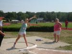 Celine Ladehoff (w13) hatte sich für Kugelstoß und 800m Lauf entschieden. Dass die Kugel bei 7,18m landete, löste bei ihr große Freude aus, zumal sie damit auch eine neue PB vorweisen konnte. Der 800m Lauf fiel dann wie auch bei den anderen Athleten der Hitze zum Opfer.