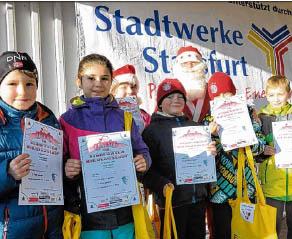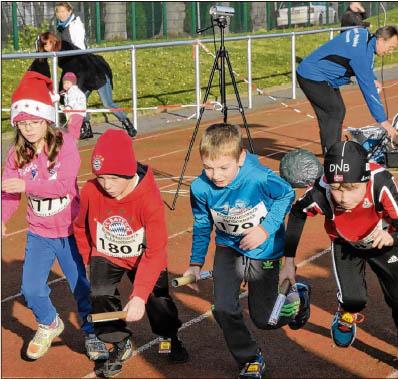 Bevor die Teilnehmer über die 30 oder 60 Minuten starteten, durfte erst einmal der Nachwuchs zeigen, was er kann. Die Kleinsten schnupperten über die 200 Meter in den Wettbewerbsbetrieb hinein. Dass der Nikolaus den Startschuss gab, war selbstverständlich. Und nachdem die Kleinen ihre Strecke absolviert hatten, durften sie in den großen Sack greifen und sich mit Leckereien belohnen.