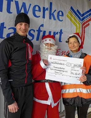 Im Team zu je zwei Läufern starteten die Teilnehmer. Es ging aber nicht darum, eine bestimmte Strecke in möglichst kurzer Zeit zu absolvieren – es war genau anders herum. In 30 beziehungsweise 60 Minuten mussten so viele Stadionrunden wie möglich absolviert werden. Sieger war das Team mit den meisten Kilometern. Gestartet wurde im Männer,-Frauen und Mix- Team. Außerdem wurden Preise für die schönsten Kostüme verliehen, weihnachtlich sollten sie natürlich sein. Dieser Preis ging an Heidi Schwenke und Silvio Kelle vom BSV Eickendorf. Beide „flogen“ als Weihnachtsengel durch das Stadion.