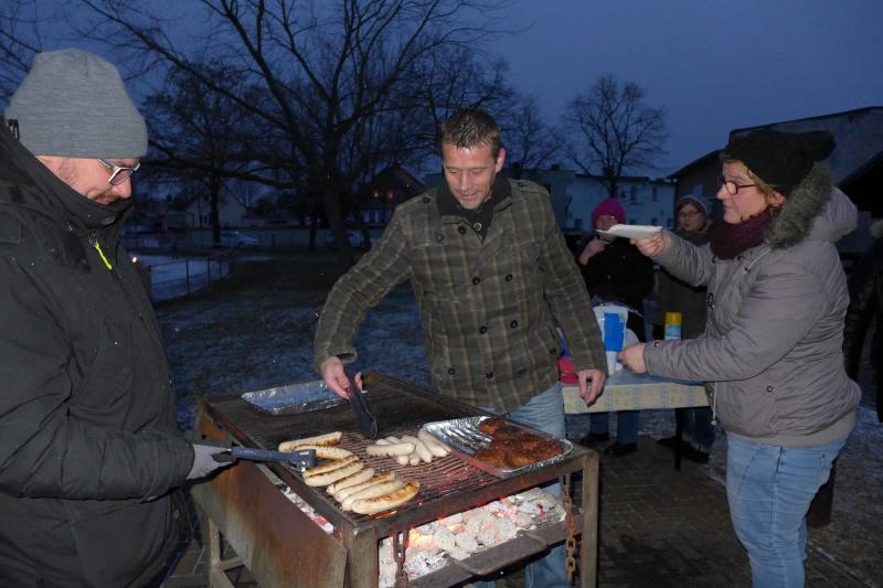 Für ihn ist wichtig, dass die Tradition gepflegt wird. Und dazu gehört eben auch dieser Lauf. Noch wichtiger als Punkte und Platzierungen sind für Krokotsch, dass die Geselligkeit in seinem Verein aufrecht erhalten wird. Dieses Zusammenkommen um die Jahreswende gehört einfach zum Vereinsleben. Und dafür hatten sich die aktiven Sportfreunde wieder mächtig ins Zeug gelegt, schmierten Fettstullen, feuerten den Grill an. Für die Kinder entzündeten Danny Glockenmeier und Philipp Herning Fackeln um den Sportplatz. Nach zwei Runden konnten sich die schnellsten drei – Leon Tangermann, Jonas Stelter und Conner Tangermann – über Gutscheine fürs Erlebnisbad im Salzlandcenter Staßfurt freuen. Alle kleinen Teilnehmer erhielten noch Überraschungseier, natürlich auch die Zwillinge Frieda und Friedrich, die zur Erwärmung sogar eine Runde vor dem eigentlichen Rennen rannten. Die Erwachsenen mussten ein paar Meter mehr durch die Feldflur absolvieren, bevor die Besten ihre Trophäen in Form von Karpfen und flüssigen „Spaßmachern“ in Empfang nehmen konnten. Bei den Frauen war das Andrea Frey, bei den Männern Nico Mahler und als ältester Teilnehmer Peter „Schacki“ Muster.