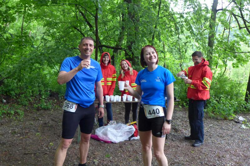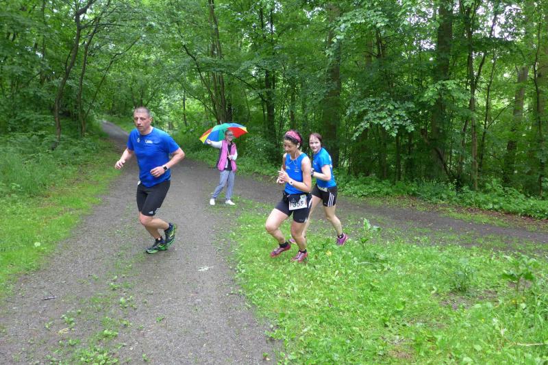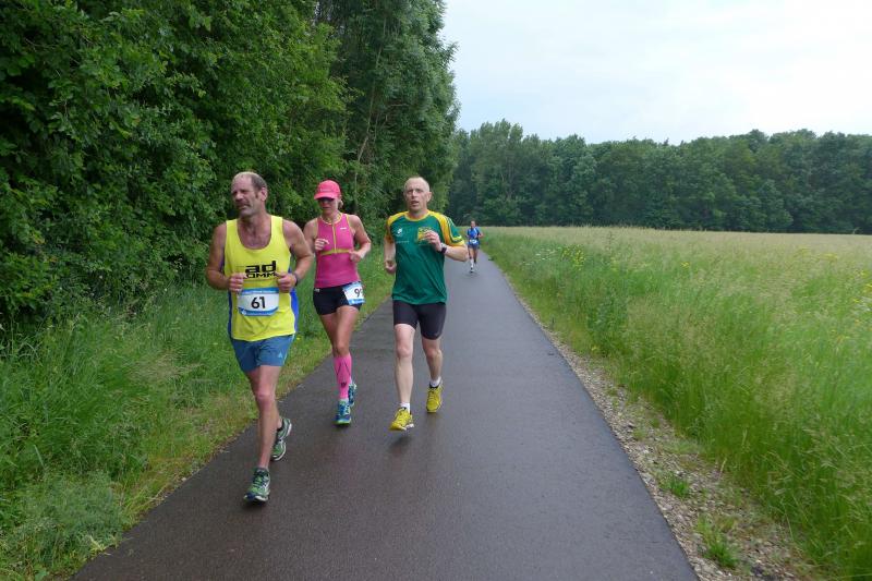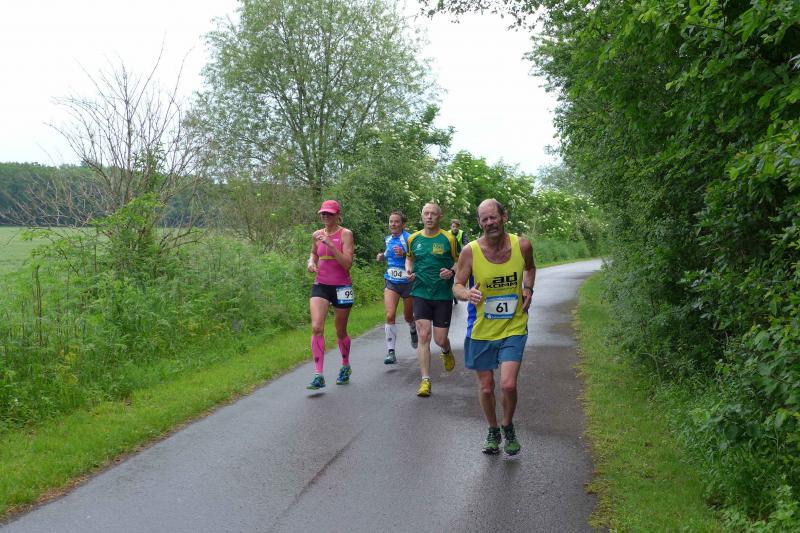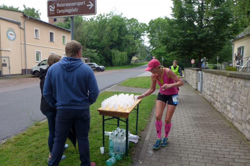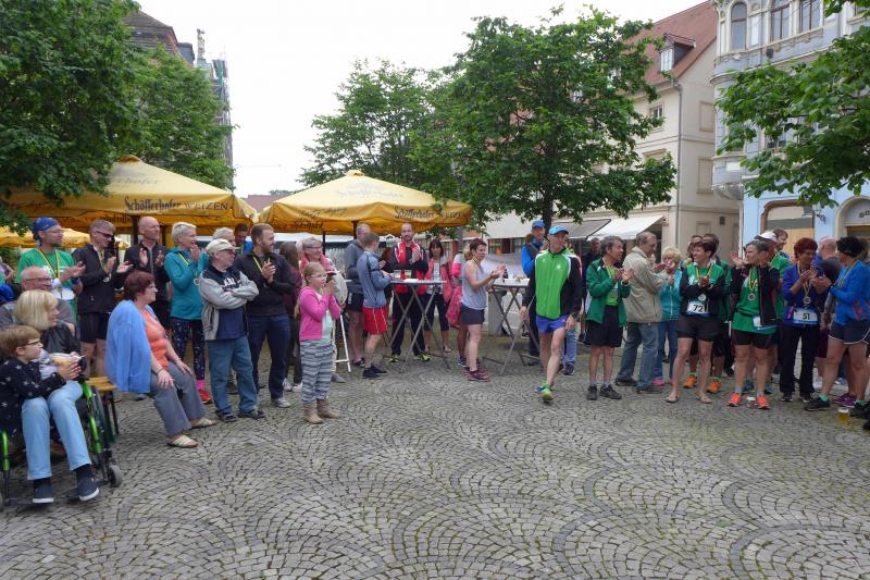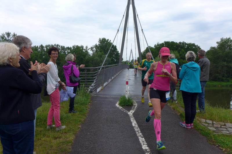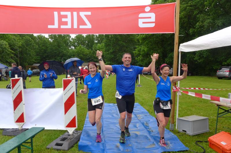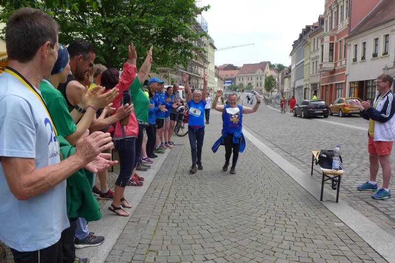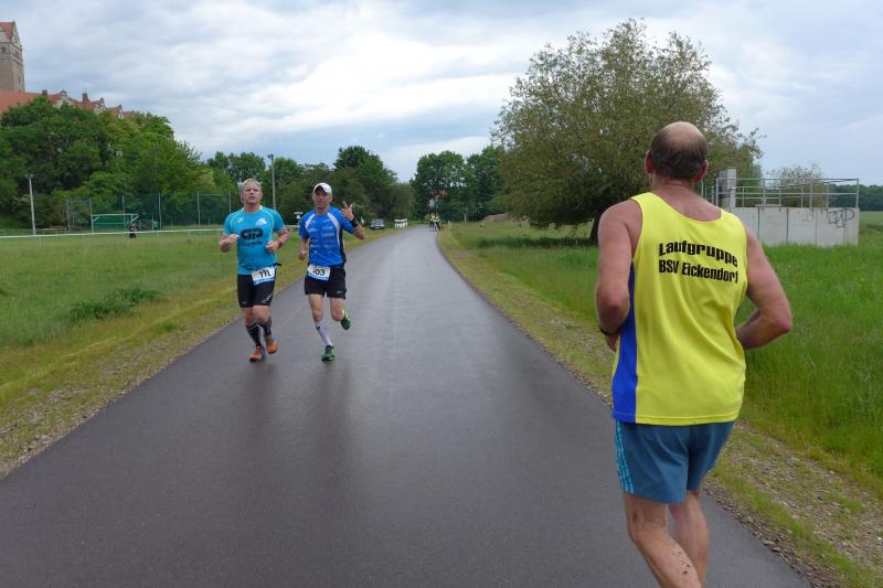 Heidi Rabenstein von der Gaensefurther Sportbewegung wollte diese Herausforderung zusammen mit ihrem Mann Ronald angehen. Mit allen guten Wünschen der Vereinskollegen erfolgte der Startschuss zusammen mit 130 Teilnehmern auf dem Alten Markt in Bernburg. Die Regenwolken hatten sich bereits vor dem Start ordentlich entleert und sollten die Aktiven noch fast über die gesamte Streckenlänge begleiten. Es ging am Bernburger Tiergarten vorbei, immer der Saale durch das dichte Grün folgend, bis in den Auwald nach Plötzkau. Auf dem Sportplatz eröffneten die Streckenposten den Läufern, dass doch bitte zwei Runden zu laufen seien. Was für ein Spaß durch das nasse Gras, spätestens jetzt waren auch die Strümpfe nass. Das erhabene Schloss grüßte vom Schlossberg und wachte über die Einhaltung der Rundenzahlen: „Hey Silvio, zurück! Zwei Runden musst du hier!“ ermahnte Jens-Uwe Börner seinen Kontrahenten vom BSV Eickendorf und verwies ihn in Runde zwei durch das nasse Gras. Börner verlor auch die Spitzengruppe der Frauen nie aus den Augen und erlebte den Zweikampf zwischen Ina Schöler (ZLG Atzendorf) und Stefanie Nowak von der Gaensefurther Sportbewegung direkt mit. Zurück in Gröna, musste Nowak nach der Saaleüberquerung dann abreißen lassen. Am anderen Flussufer ging es zurück nach Bernburg. Schöler meisterte ihren ersten Lauf in diesem Jahr mit Bravour und meldete sich mit dem Gesamtsieg bei den Frauen in beeindruckender Wettkampfform zurück. Bei den Männern holte sich Toni Keller in nur 01:18:05 den Pott über den Gesamtsieg. Im vereinsinternen Duell der Triathleten war Maik Löwe am laufstärksten, gefolgt von Stefan Berger und Steffen Schöler, die mit ihren Zeiten mehr als fit sind für die laufende Triathlonsaison. Sein wachsames Auge und die Pace mit den schnellsten Frauen des Laufes, verhalfen am Ende auch einem überglücklichen Börner auf das Podest. Kathleen Mahler finishte nach dem Rennsteig zufrieden ihren zweiten Halbmarathon und ihr Mann Nico reformierte quasi seine Bestzeit über diese Distanz um ganze zehn Minuten. Sabine Börner freute nach dem absolvierten Ultra, dass die Beine auch noch einen schnellen Lauf hinbekamen.