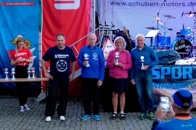 Olaf Moch (1:33:20h) und Kirsten Geist (2:03:09h) (beide AK50) komplettierten den Erfolg der Gaensefurther mit Platz 3 und 2. Alle genossen die Siegerehrung mit abschließendem Feuerwerk. Ganz sicher werden 2018 wieder einige Gaensefurther bei diesem gut organisierten Triathlon mit super interessiertem Publikum starten.