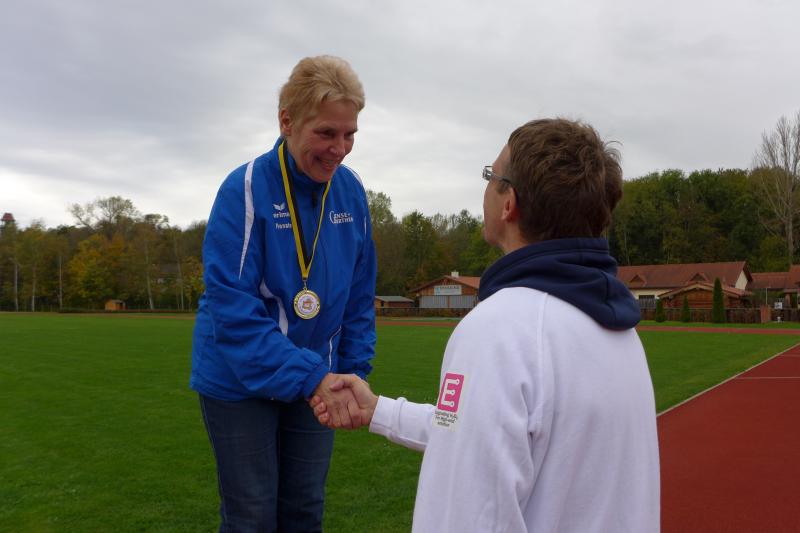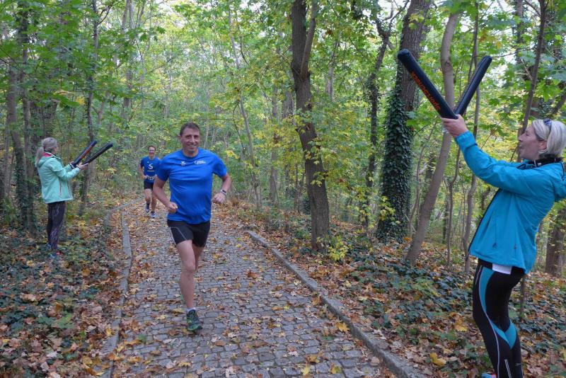 Ein schneller Sprint über fünf Kilometer war zu absolvieren, und mit den langgezogenen Stufen hinauf zum Märchengarten waren die zwei Runden durchaus anspruchsvoll. Nico Mahler, der hier im vorigen Jahr regelrecht den Startschuss verpasst hatte und dem Läuferfeld hinterher jagen musste, war bei dieser Auflage besonders wachsam. Ironisch monierte er einen Tiefstart, womit er die Lacher erstmal auf seiner Seite hatte. Spätestens mit dem Start konzentrierte sich dann jeder Sportler wieder auf seinen Lauf. Nachdem sich das Feld auf dem ersten Kilometer sortiert hatte, folgten auch bald die angekündigten Treppenstufen. Kein Problem für alle gut trainieren Läufer, zumal ganz oben rhythmische Saxophonklänge zum Durchhalten animierten. Die Bedingungen waren gut, und nach einer geraden Passage ging es wieder hinab in Richtung Bernburger Arena. Mit der Motivation der Zuschauer folgte auch schon die zweite Runde. Alle Männer liefen im vorderen Feld mit, auch Kathleen schlug sich wacker und war bald nicht mehr zu sehen. Renate nahm Stufe für Stufe nach der Taktangabe von Sabine Börner: "Hopp, hopp, hopp!" Oben angekommen, servierte Katrin Winkler-Hindricks wieder neue Rhythmen aus dem Saxophon, mit denen Börner ihrem Schützling die Sporen gab: "Lauf Renate, du kommst alleine klar!" Susan Dannehl, die gehend nach Luft schnappte, brauchte da eher einen Motivator. Sie war zum ersten Mal bei einem Wettkampf gestartet und in ihrem Leben schon lange keine fünf Kilometer mehr durchgelaufen. Eine Gehpause mit tiefen Atemzügen war hier erstmal das allerbeste. "Die Hälfte hätte auch gereicht!", gesteht sich die Debütantin und zweifelt kopfschüttelnd darüber, wie man nur einen ganzen Marathon durchhalten kann. Da plauderte Börner natürlich gerne aus dem Nähkästchen, denn nicht viel anders sahen ihre ersten Laufversuche damals aus. Im leichten Trab war die Anhöhe erreicht und locker ging es wieder hinab, total egal ob Schlusslicht oder nicht. Die kleine Parkeisenbahn zuckelte genauso gemütlich wie das Duo vorbei und nach den letzten Stadionmetern galt der Applaus einer wahnsinnig glücklichen Läuferin: "Susan, du hast heute alle geschlagen, die auf der Couch liegen geblieben sind!"