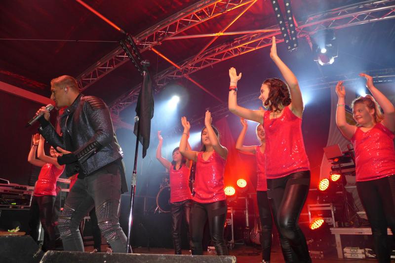 Ein farbenprächtiges Feuerwerk, untermalt mit passender Musik aus Film und Fernsehen, vom Guten- Abend-Gruß des Sandmännchens bis zu Hits von Metallica, brannten die Pyrotechniker aus Eibenstock wieder ab – und ernteten begeisterten Applaus von den Zuschauern am Stadtsee. Die Feuershow Robaria aus Thüringen faszinierte sowohl mit Elementen des Feuerspuckens, als auch mit Feuerkanonen. Zudem stimmte sie mit einem kleinen Feuerwerk auf den Höhepunkt des Abends am Stadtsee ein. Und die Schlagerfans ließen sich gern von Norman Langen in Partystimmung bringen. Die Dance Factory Egeln freute sich einmal mehr, zusammen mit einem Stargast auf der Bühne tanzen zu dürfen. Fotos: Jens-Uwe Börner