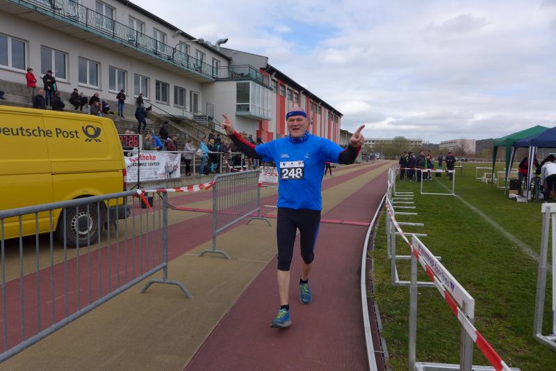 Doch mit dem Blankenburger Cross steigerten sich die Anforderungen gewaltig. Am Ende berichteten fünf Bode-Runners von Stürzen und dass, obwohl unzählige Wurzeln und Felsvorsprünge mit unübersehbarer Signalfarbe markiert waren. Nach dem Überqueren der neu benannten A36 und dem schweißtreibenden Anstieg hinauf zur mittelalterlichen Felsenburg, wurden die Anstrengungen der Läufer mit herrlich weichen Waldböden belohnt. Der Heers, ein wohlriechender, dichter Kiefernwald im Naturpark des nördlichen Harzvorlandes, erstreckt sich dort bis fast nach Halberstadt. Unbemerkt ging es für die Läufer vorbei an den Felsformationen der weichen Sandsteinhöhlen, bevor es nach fast 14 Kilometern über die A36 wieder zurück zum Sportforum ging. Und auch das gehörte zum Regensteinlauf mit dazu: Cheforganisator Matthias Heede ließ es sich trotz der ganzen Anspannung nicht nehmen, die Läufer vor dem Stadion zu empfangen und auf die letzten Meter der Stadionrunde zu schicken. In den Gesichtern war zu lesen, dass er und sein Team wieder alles richtig gut gemeistert hatten. So empfanden es auch die Gaensefurther, die sich in dem großen Starterfeld tapfer geschlagen hatten.