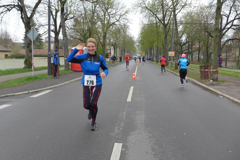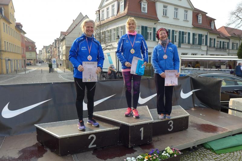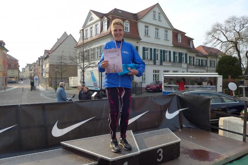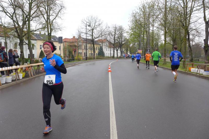 Beim City-Lauf Naumburg war wirklich die Creme de la Creme der Laufelite vertreten, denn dieser Wettkampf wurde zugleich als Landesmeisterschaft im Straßenlauf und als Deutsche Gehermeisterschaft ausgetragen. Nachdem die Geher vormittags noch im Schneegestöber unterwegs waren, hatte sich die Wetterlage zum Zehn-Kilometer-Start der Gaensefurther etwas entspannt. Der Nieselregen und die kühlen Temperaturen kamen den schnellen Sprints auf der Straße sehr entgegen. Nun mussten genau zehn Runden zurückgelegt werden. Mit den Meisterschaften hatten die Gaensefurther nichts zu tun, denn nur Startpassinhaber gingen in diese Wertung ein. Der Kreisverkehr am Marienring war gut zu laufen und den Konkurrenten konnte man prima in die Augen sehen. Dagegen war die spitze 360-Grad-Wende am Theaterplatz nach weiteren 500 Metern eine echte Herausforderung. Der Asphalt war rutschig und nass, so dass das Lauftempo an dieser Passage drastisch reduziert werden musste. Und wieder anlaufen, vorbei am Sprecher und den zahlreichen Helfern die die Runden zählten, bevor der nächste Kilometer angegangen wurde. Ein guter Testlauf für die sechs teilnehmenden Bode-Runners, die sich im starken Feld der Profiläufer nicht lumpen ließen. Nur aus dem Ziel, ein paar Körner für den Wettkampf am nächsten Tag aufzuheben, wurde leider nichts. Zu groß war der Reiz alles zu geben, so dass die Runners am Ende doch wieder schweißgebadet im Ziel landeten. Der guten Stimmung tat dies kein Abbruch, denn der Moderator und DJ hatte für jeden Finisher neben treffenden Sprüchen meist noch ein musikalisches Intermezzo auf Lager. Als Renate Liedtke dann mit dem Refrain „Volle Granate, Renate, Renate, Renate, Renate“ empfangen wurde, war das schon wie eine kleine Siegerehrung. Diese feierte sie im Anschluss, ebenso wie Kirsten Geist, auf Platz eins in ihrer Altersklasse.