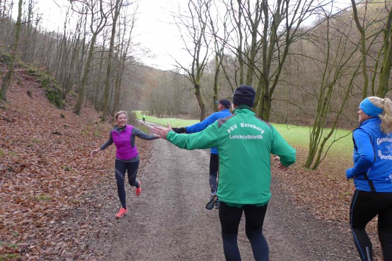 Doch erst die Arbeit, dann das Vergnügen, und so starteten die Teilnehmer je nach ihrem derzeitigen Trainingszustand über die sechs, zehn oder 20 Kilometer langen Strecken. Wer durch das schöne Harzer Selketal lieber walken oder wandern wollte, reihte sich hinter der großen Läuferschar ein. „Wir sind hier schon bei minus 20 Grad gelaufen!“, erinnerte sich Fritz Ballerstedt vom LAC Aschersleben und scherzte: „Da war sogar mein Bart gefroren!“ In der Tat erlebten Wiederholungstäter in Meisdorf schon jedes Wetterszenario, doch das spielt auch gar keine Rolle, denn der Punschlauf funktioniert ganz ohne Wettkampfgedanke. Hier zählen die große Lauffamilie, das Wiedersehen und die gemeinsame Bewegung an der frischen Luft. Die ganz fleißigen Läufer nahmen den langen Kanten über die Leimuferstraße in Angriff. Doch da mussten die Teilnehmer erst eine anspruchsvolle Steigung erklimmen, bevor die Strecke erholsam durch den waldigen Ballenstedter Forst führte.