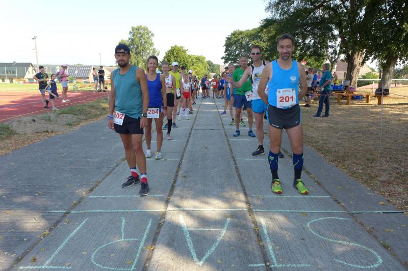 Bei seiner Ansprache musste auch Christian Jung schmunzeln, denn dem Motto „Crosslauf in den Frühling“ war man trotz sommerlicher Temperaturen treu geblieben. Besser spät als nie, honorierten die Läufer den Einsatz des Veranstalters, liegt der letzte Start in Demker nun fast ein halbes Jahr zurück. Während sich der 400-Meter-Start der Bambinis mit einer Handvoll Teilnehmer noch recht übersichtlich gestaltete, kam der Kampfrichter beim 1-Kilometer-Rennen schon leicht in Erklärungsnot. Die Startaufstellung funktionierte gut, doch nach dem Startkommando gab es kein Halten mehr, schließlich wollte keiner der Letzte sein. Aber schnell zog sich das Läuferfeld wieder auseinander, denn eine Anhöhe ließ die Waden brennen und gestaltete das Rennen sehr anspruchsvoll.