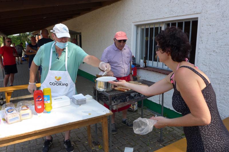 „Aufstellung der geraden Startnummern rechts, der ungeraden links in Laufrichtung!“, so ein Vorschlag aus der Läuferschar, als es um das Handling der Hauptläufe ging. Guter Tipp, Corona macht halt erfinderisch! Auch das mit dem Wellenstart klappte jetzt besser, denn erst wenn die beiden Vorläufer über die Schleife der Zeitmessung gelaufen waren, rückte das nächste Pärchen nach. Mit der Anmeldung hatte jeder Läufer bereits seine beabsichtigte Zielzeit angegeben, so dass die schnellsten in den vorderen Reihen auch möglichst wieder als erste im Ziel einliefen. Kam es doch zu Überholmanövern, galt die Abstandsregel, wodurch bei Nichtbeachtung eine Disqualifikation drohte.
