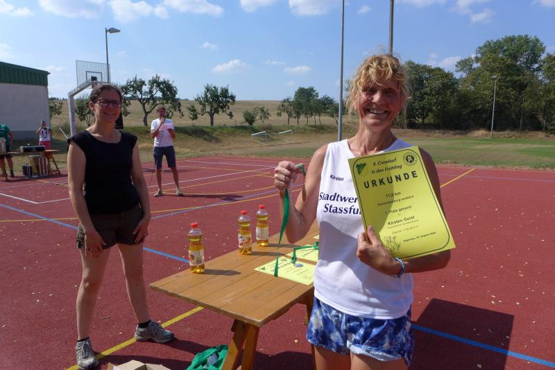 Janine Wuwer überzeugte im vereinsinternen Duell mit der schnellsten Zeit und rettete ihren dritten Platz glücklich über die Ziellinie. Auch alle weiteren Bode-Runners-Damen schnappten sich einen imaginären Podestplatz. Wer von den Zwölf-Kilometer-Läufern nicht am Getränkestand anhielt um die Wasserreserven aufzufüllen, nahm den Schwung mit in die zweite Runde. Nur drei Damen waren auf dem langen Kanten mit von der Partie – unter ihnen auch Bode-Runner Kirsten Geist. Gespannt verfolgten die Wartenden die nächsten Zieleinläufe und tatsächlich, Geist lief als erste Frau in der Gesamtwertung ein! Die Freude war riesig und musste umso mehr in Zaum gehalten werden. So nahm „frau“ die bereitgestellte Urkunde und Medaille an sich und statt Händeschütteln und Umarmungen, schenkte sie der Kamera ihr schönstes Lächeln.