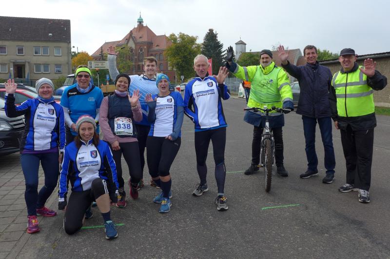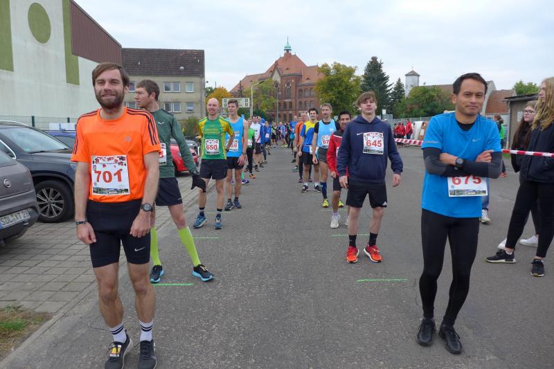 So richtig warm wurde den Läufern erst nach dem Start, denn die niedrigen Temperaturen und der kalte Wind sind noch ungewohnte Komponenten bei der Laufarbeit. Mitunter war das gewählte Langarmshirt dann doch eine Idee zu dick. Die Langdistanz verschwand schon im Wald, als auch der Wertungslauf der Frauen auf die Reise geschickt wurde. Da die Zeitnahme erst mit dem Überqueren der Startlinie auslöste, konnten die versetzten Starts „mit Abstand“ ohne Probleme umgesetzt werden. Überhaupt hatte der SV Germania Tangerhütte sein Hygienekonzept tadellos im Griff. Dabei waren getrennte Startnummernausgaben, Laufrichtungen und der Verzicht auf Umkleiden, Siegerehrungen und Ergebnislisten die kleinere Herausforderung. Der Veranstaltungsort musste komplett neu platziert werden, da die Rundenlänge im Tangerhütter Schlosspark zu kurz und die Läufer sich damit zu oft begegnet wären. Neuer Start-Ziel-Bereich war kurzerhand der Werner Seelenbinder Sportplatz am Ortsausgang von Tangerhütte. Die Ersatzstrecke entlang des Altmark-Radweges trumpfte mit viel Wald und allen Untergründen, die ein Läuferherz höher schlagen lassen. Über das offene Feld kam der kalte Wind dann nochmal mit voller Wucht - nur gut, dass ich heute mein langes Laufshirt anhabe - war vor dem Ziel dann vielleicht der versöhnliche Gedanke.