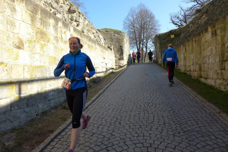 Schnellste Läuferin der Boderunners war Sandra Homann, die ihre Eindrücke so zusammen fasste. "Berge ohne Ende hochlaufen ist nicht mein Ding, bergrunter ist eher meine Stärke, da fliege ich. Die Kombination der unterschiedlichen Laufwege war eine extreme Herausforderung und macht diesen Lauf so besonders. Das Highlight war, oben an der Burgruine anzukommen, was schwer genug war und dann das Rennen zu genießen. Sand und Waldwege gespickt mit Wurzeln wechselten sich mit gepflasterten Wegen ab. Du musst hier extrem konzentriert Laufen, langweiligen Asphalt gibt es nicht. Das gibt diesem Lauf den besonderen Kick." Da auch Sandra im Vorfeld erkrankt war, ist ihre Leistung ebenso stark und mit einem 2. Platz in ihrer Altersklasse gekrönt worden.