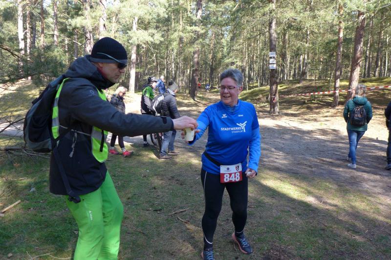 Ganz neue Wettkampferfahrungen machten ebenso über die 9,5 km Strecke für den Landescup Verena Hildebrandt und Bärbel Lallecke, die bei den Boderunners seit dem vorigen Jahr trainieren und das Team bereichern. Bärbel sagte danach: "Mit diesem anspruchsvollen Lauf in meinen ersten Wettkampf zu starten, war vielleicht nicht die beste Idee. Für mich als Walkerin war es ganz schön hart. Aber, es wächst der Mensch mit seinen Taten. Was ich besonders toll finde, ist der Gemeinschaftssinn der Truppe. Verena und Kirsten haben mich auf meinem letzten Kilometer in Stadion begleitet, da war es dann nicht so schmerzhaft. Danke Mädels nochmal dafür."