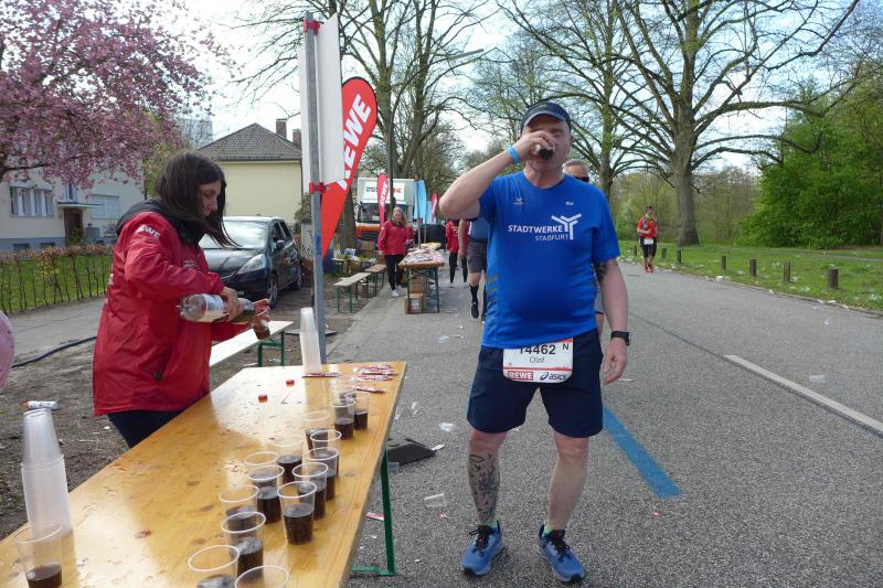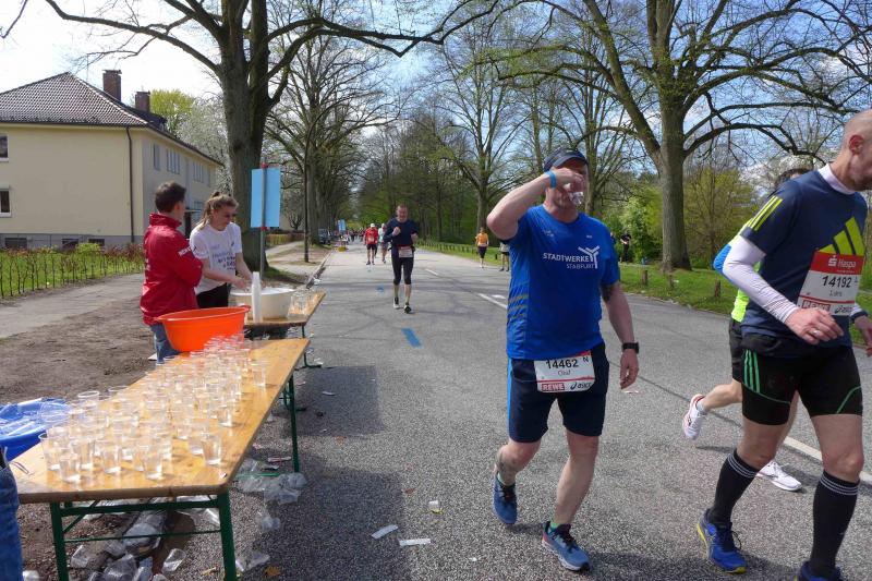 In Börners Zeitplan passte alles wieder und ein Foto nach dem anderen dokumentierte nicht nur Bothe, sondern auch das verrückte Drumherum an der Laufstrecke. Eine Band löste die nächste ab, Picknick am Streckenrand und gut gelaunte Hamburger, die ihre Marathonläufer Meter für Meter durch die Stadt trugen. Die regelmäßig eingerichteten Verpflegungspunkte nahm Bothe alle mit: "Trinken!", das hatte er sich gemerkt! Im Ziel feierte man in der Zwischenzeit neue Streckenrekorde.