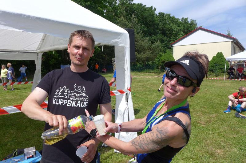 In Harzgerode lud am Pfingstsonntag der WSV zur 41. Auflage des Klippenlaufs ein. Und so wie der Name es verspricht, ging es auf den Cross-Strecken Klippe auf und Klippe ab. „Lange genug habe ich mich jetzt auskuriert!“, so Nancy Bothe nach wochenlanger Laufpause. Langsam und bedacht, aber ausdauernd wollte sie die 15-Kilometer-Distanz angehen. Ehemann Olaf, Jens-Uwe Börner und nicht zuletzt ihre bequeme Yogahose, sollten sie ab und zu an diese Vorgabe erinnern. Doch weit gefehlt, hatte sie eher den Eindruck, irgendwie immer auf ihre Männer warten zu müssen. Unversehrt und voller glücklicher Endorphine finishte das Trio die Zielline in Harzgerode. Von diesen Glückshormonen konnten die Starter über die neu aufgelegte Strecke der Halbmarathondistanz nichts aufbauen. Vom Streckenposten falsch geleitet, hatten die meisten Teilnehmer am Ende mehr als 21 Kilometer absolviert, was den Veranstalter dazu bewog, eine Sonderwertung für die Irrläufer vorzunehmen. Für Sandra Homann sprangen dabei nicht nur eine Medaille und eine Urkunde heraus, alle Erstplatzierten durften einen Pokal mit nach Hause nehmen. Zudem zauberte die Aussicht auf einen kostenfreien Startplatz im nächsten Jahr, dann spätestens wieder mild gestimmte Gesichter bei den Irrläufern. Auch auf der Fünf-Kilometer-Distanz waren einige Höhenmeter zu absolvieren, was Sabine Börner im lockeren Laufschritt gut gelang.
