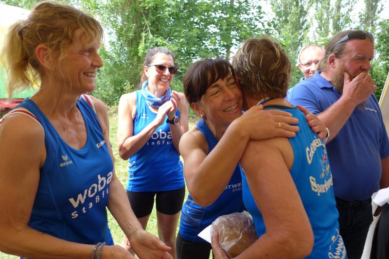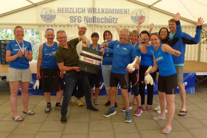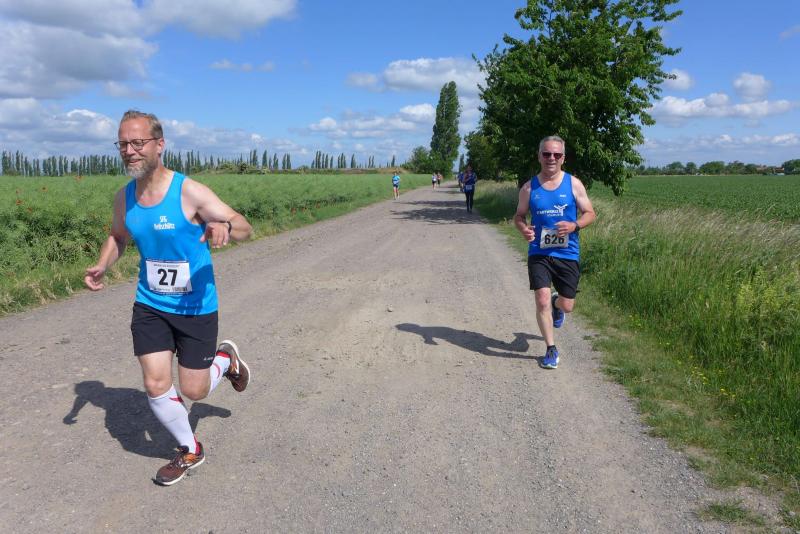 Doch keine Gnade für die Wade, rief die SFG Nellschütz am Pfingstmontag zum 20. Gerstewitzer Mühlentaglauf auf. Hier sollte nochmal der Mannschaftsgedanke motivieren, ging es doch im Rahmen des Landescups nicht nur um wichtige Wertungspunkte, sondern war für die stärkste Truppe auch ein Fass Bier ausgeschrieben. Immerhin 13 Bode-Runners nahmen die weite Anreise nach Nellschütz auf sich. „Na die 13 hat uns schon beim Salzland-Lauf Glück gebracht!“, erinnerten sich die Bode-Runners an die Diskussion über eine Veranstaltung an einem Freitag dem 13. Doch schon bei Abholung der Startunterlagen wurde deutlich, dass es eine ganz knappe Sache mit den antretenden Füchsen aus Hassenhausen werden würde. Die Auflösung blieb bis zum Schluss spannend, denn zuerst galt alle Kraft den Laufstrecken. Ganz Nellschütz war an der Strecke um die Läufer anzufeuern und mit lautem Kirchturmgeläut wurde dem benachbarten Gerstewitz signalisiert: „Die Läufer sind jetzt los!“ Mitten im Getümmel auch Neuzugang Conny Günther, die sich die Sechs-Kilometer-Distanz als erste Wettkampfstrecke mit den Bode-Runners ausgesucht hatte. „So aufgewühlt hab ich dich nie gesehen!“, sang man noch den Klaus-Lage-Song mit ihr, um die Aufregung ein wenig zu nehmen. Ganz tapfer absolvierte die Debütantin Schritt für Schritt, und spätestens nach der Umrundung der Gerstewitzer Mühle sah sie, wie viele Läufer ihr noch entgegen kamen. Nun gab es bis in das Ziel sogar frischen Rückenwind. Die lustigen Nellschützer hatten während dessen das eine oder andere Bierchen verdrückt und empfingen ihre Mühlentagläufer wieder mit motivierenden Sprüchen für den Endspurt. Das hat Eindruck hinterlassen, immerhin durften sich am Ende von den 13 angereisten Staßfurtern acht Altersklassengewinner ein frisch gebackenes Mühlenbrot vom Müllermeister abholen. Nun wurde es ganz still im großen Festzelt, denn die stärkste Mannschaft für das Bierfass sollte ermittelt werden! Was für eine Freude, als feststand, dass sich die weite Anreise für die Gaensefurther Sportbewegung auch in diesem Fall gelohnt haben sollte! Das Fass kommt genau richtig für die Abende des geplanten Trainingslagers und die 20-jährige Jubiläumsfeier der Laufgruppe Bode-Runners…