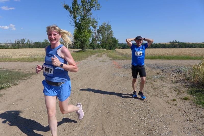 Anders die Läufer der Strecken im vierten Wertungslauf der Solvay-Cup-Serie über 5,7 und 9,8 Kilometer, die den heißen Temperaturen etwas länger ausgesetzt waren. Über den saftig weichen Spielrasen ging es für die Strecken gemeinsam vom Sportplatz zur Bahnunterführung und dann auch bald hinaus, rund um den Gierslebener Hain. Genau hier begann vor drei Jahren Rinaldo Schielkes „Laufbahn“ bei den Bode-Runners. Als er 2019 mit dem Gesamtsieg über die Kurzstrecke sein mögliches Potential zeigte, waren die Bode-Runners von dem Neuzugang sehr angetan. Aktuell holte er sich in Giersleben den Altersklassensieg in der M30 auf der Wertungsstrecke über 9,8 Kilometer und musste nur Minh Lé vom PSV Bernburg den Vortritt im Gesamtklassement der Männer lassen. „Im nächsten Jahr rutsche ich dann in Lé`s Altersklasse!“, malt sich Schielke schon jetzt die spannenden Rennen mit dem Lauffreund und Konkurrenten aus. In der Altersklasse M55 konnte sich auch noch Peter Brauer über seinen zweiten Platz freuen.