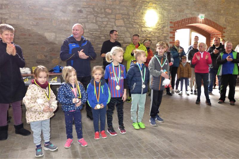 Die Siebenjährige blieb dran und sicherte sich am Ende ihre Bronzemedaille für die Gesamtwertung bei den Frauen. In der Kinderwertung freute sich Valentin Wuwer über den dritten Platz auf dem Ein-Kilometer-Kurs. Da nur wenige Teilnehmer am Start waren, durften sich alle Kinder über eine Medaille freuen. Mit der Wertung der drei schnellsten Frauen und Männer war die Siegerehrung dann auch schon erledigt und man ging zum gemütlichen Teil über. Franzelius war über die Resonanz sehr zufrieden, mit 76 Volksläufern hätte er nicht gerechnet…