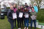 Zeitgleich und durchaus auch bergig, nahmen 150 Kilometer entfernt, sechs weitere Gaensefurther den bereits 41. Osterberglauf in Schlagenthin unter die Lupe: „Den wollte ich immer schon mal laufen!“, stöhnt Stefan Sindermann über den vollen Laufkalender und freut sich, dass es in diesem Jahr terminlich mal gepasst hatte. Der fleißige Volksläufer versucht alle drei ausgeschriebenen Lauf-Cups in Sachsen-Anhalt zu bedienen, was aber nicht einmal theoretisch umzusetzen wäre. Meist mit im Schlepptau die Familie Siebert mit Emily und Lotta, die in der Wertung des Elbe-Ohre-Cups schon fleißig Punkte gesammelt haben. Ausgemachtes Spiel, als Sabine Börner schmunzelnd die Startnummern über den Ein-Kilometer-Lauf in den Händen hielt: „Emily Nummer „Eins“ und Lotta, dir kann mit der Nummer „Sieben“ ja auch nichts passieren!“ Damit stand Emily nun mächtig unter Druck. Hinzu kam, dass scheinbar Lauffreund Aaron Wauschkuhn (Oschersleben) die Startaufstellung verpassen würde. Doch kurz vor dem „Auf die Plätze, fertig, los!“ stand er, wie schon so oft, neben ihr an der Startlinie. Die beiden machten mit den Gesamtsiegen weiblich und männlich natürlich ihr Ding und klein Lotta freute sich neben ihrer Glückszahl auf der Brust auch noch über ein Osterei in ihrer Lieblingsfarbe. Auch für die „Großen“ gab es nach getaner Laufarbeit bunte Eier im Ziel. Trotz des unangenehmen Nieselregens war es für Sindermann weitaus angenehmer zu laufen als bei der Schlammschlacht vor einer Woche in Grillenberg. „Herrliche Strecke!“, schwärmte der Lauffanatiker im Schottenrock. „Dieser Eichberg!“, holte Kathleen Mahler nach der Ziellinie tief Luft nach ihrem ersten OsterBERGlauf in Schlagenthin. Nach diesen Anstrengungen hatten sich die fleißigen Bode-Runners der Gaensefurther Sportbewegung allemal ein ruhiges Osterfest mit der einen oder anderen Leckerei verdient…