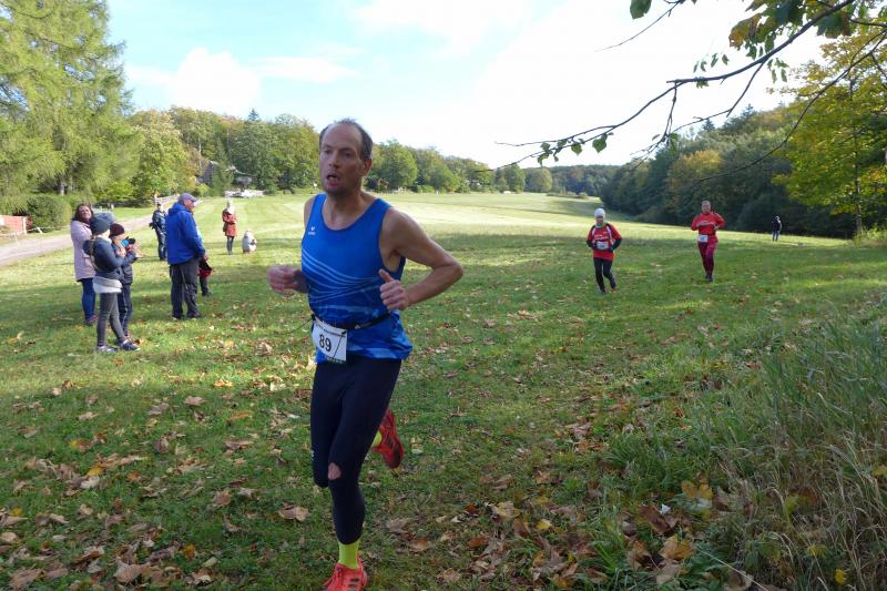 Naturlauf Nummer zwei hatten Gaensefurther dann auch am Folgetag, beim zehnten Friedrichsbrunner Herbstcrosslauf. Niemand hat mit ihm gerechnet, Stampnik war wieder da! Keine 24 Stunden vorher über den Brocken einen Marathon gefinisht, war er selbst nicht davon überzeugt, über die gemeldeten fünf Kilometer wirklich in das Ziel zu kommen. Nachdem für Jens-Uwe und Sabine Börner der Startschuss über zwei Runden von jeweils fünf Kilometern erfolgt war, begab sich Stampnik zusammen mit Nicole und Jens Schlottag auf die Verfolgungsjagt ihrer Vereinskollegen. Bei eisig frischen vier Grad Celsius ging es vom Kurpark in die weite Flur, über herrlich saftige Wiesen, dichte Mischwälder und so einige Höhenmeter. Börners waren gerade dabei die letzte krasse Steigung zu bezwingen, als die ersten Sprinter von hinten nahten. Als Dritter grüßte der Marathonmann vom Vortag, überholte das Ehepaar schwer atmend und hielt seine Platzierung bis in das nahe Ziel. Gratulation an Stampnik beim Durchlauf, mussten Börners ja erst noch ihre zweite Runde absolvieren.