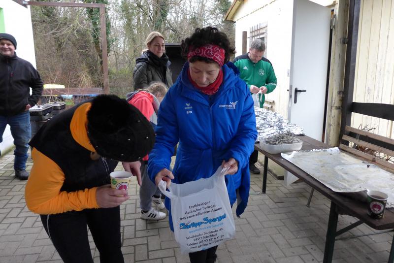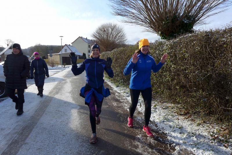 Nur einen Tag später wünschten sich beim traditionellen Punschlauf in Meisdorf die Sportler ein gesundes neues Jahr. Reger Austausch zu geplanten Läufen in der neuen Saison, bevor für 110 Teilnehmer der „Startschuss“ mittels Luftballonknall erfolgte. Weitaus kälter als noch in Ilberstedt, ging es über sechs, zehn oder 20 Kilometer auf die stellenweise vereisten Strecken. So waren auch einige Stürze zu verzeichnen, die den Lauf durch die verschneite Winterlandschaft jedoch nicht trübten. Auch das Flüsschen Selke blieb entgegen der Hochwassersituation im Salzland brav in ihrem Flussbett. Anke Delius und Kirsten Geist meisterten ihre 20 Kilometer zusammen und füllten in über zwei Stunden Laufarbeit ihre Lungen mit reichlich frischer Harzluft. Leckerer Punsch, Tee, Würstchen, Schmalzstullen, Muffins und sogar Punschkuchen waren im Ziel Belohnung für das frühe Aufstehen und die Anfahrt an diesem feuchtkalten Sonntagmorgen. Die zwei aufgestellten Feuerschalen machten nicht nur warm ums Herz sondern ließen auch die durchgeschwitzten Laufsachen schnell wieder trocknen. Da konnte man auf das inzwischen kalte Duschwasser durchaus mal verzichteten.