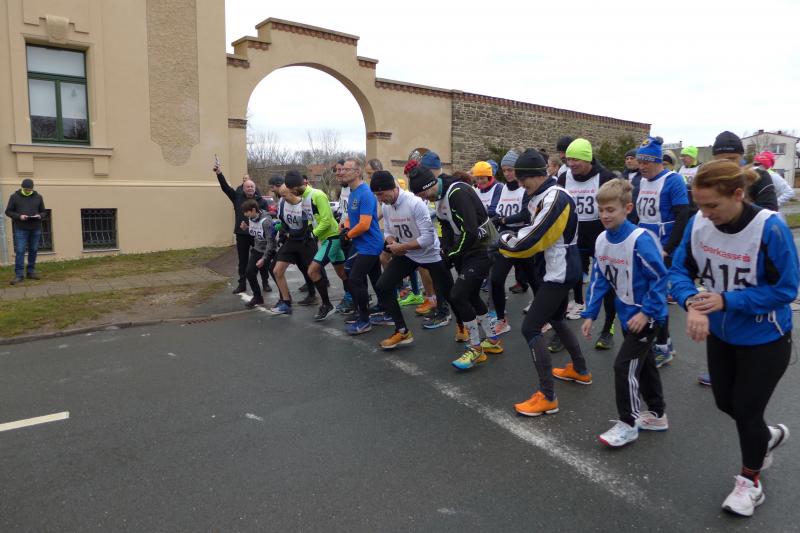 Nach einer kurzen Begrüßung durch Franzelius ging es auch schon an den Start, denn die liebgewonnene Erwärmung nach rhythmischer Musik fiel leider den Gema-Klauseln zum Opfer: "Schade, das war doch immer das Beste am Neujahrslauf!", schmollten die Teilnehmer traurig. Aber nach dem Startschuss mit "Auf die Plätze, fertig, los!" war von Frust nichts mehr zu spüren, höchstens vom Frost, der die Nasenwände durch das schnelle Einatmen ganz eng werden ließ. Die Streckenposten hatten sich vor Ort für eine Verkürzung der ausgeschriebenen fünf Kilometer entschieden, denn der Weg über die Autobahnbrücke war noch stark vereist. Durch die kürzere Distanz wurde stark auf das Tempo gedrückt.