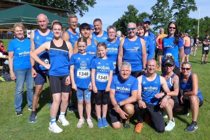 An den strömenden Regen im Vorjahr und dem Ausharren unter einem Zelt konnten sich die Starter noch ganz genau erinnern. Diesmal war alles wie immer: Heiß in Giersleben! Das hielt die Laufgemeinschaft aber nicht davon ab, für Simone Herbst vom SV Lok Blankenburg kurz vor dem Start ein kraftvolles Geburtstagslied zu singen. So gut aufgewärmt, ging es in leichten Wellen über die weichen Wiesen des Hains. Wer den Schwierigkeitsgrad steigern wollte, der hatte die Langdistanz über 13,6 Kilometer gewählt. Mit einem ordentlichen Abstecher hinauf zum Gedenkstein Herzog Heinrichs, hatten diese Weggefährten am Ende auch genügend Höhenmeter in den Beinen. „Unsere Bergläufer!", begrüßten die Bode-Runners ihre pustenden Lauffreunde im Ziel mit Applaus und Glockengeläut. "Es war ein wunderschöner, abwechslungsreicher Lauf durch die Natur, der viel Spaß gemacht hat!", lobte Anja Kroner und fand die vielen Verpflegungsstationen in Anbetracht des strahlenden Sonnenscheins als sehr umsichtig vom Veranstalter. Bei knusprigem Spanferkel und leckerem Kuchen feierten die Gaensefurther so einige Altersklassenplätze. Bis zum Schierker Sommerlauf im August gibt es nun eine kleine Sommerpause für die Bode-Runners. Sicher wird sich der ein oder andere Volkslauf in den Urlaubsregionen finden lassen.