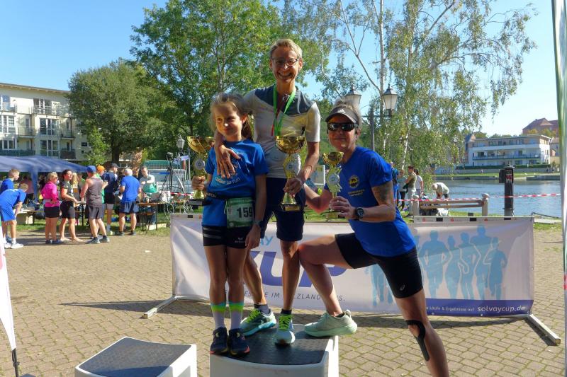Auf den Zwölf Kilometern war Anja Kroner schon ein bisschen stolz auf ihren dritten Platz im Gesamtklassement der Frauen. Zusammen mit Jens Kunkel gelang es ihr, unter einer Stunde zu laufen. Francesco Navarra brauchte erst ein paar Minuten zum runterkommen, lief er doch den Halbmarathon mit 01:27:52 Stunden in neuer persönlicher Bestzeit. Ein starker Maik Löwe aus der Abteilung Triathlon, wie auch Vereinskollege Thomas Vetter, der nach Ironman und Hölle von Q nicht ans Ausruhen denkt. Bei den Frauen punktete Kirsten Geist mit einer Glanzzeit von 01:40:54 Stunden und Gesamtplatz drei erneut für den Novo Nordisk Landescup und gleichzeitig für den Solvay-Cup des Salzlandkreises.