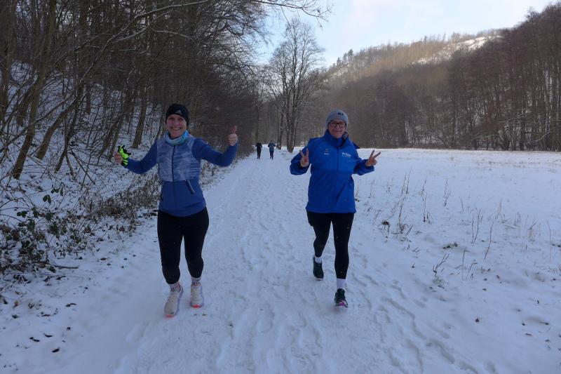 Die Nacht hatte das Selketal bei Meisdorf noch in winterliches Weiß gehüllt. Dass dennoch über 100 Laufbegeisterte den kalten und teilweise rutschigen Wetterbedingungen trotzten, freute den gastgebenden SV Germania 1928 Meisdorf sehr. Den gemeinsamen Start für alle Strecken vollzog Ulrich Küsters mit einem knallenden Luftballon. Schnell hatte das Läufer- und Walkerfeld den Ortsausgang erreicht und tauchte mit dem Naturlehrpfad in das Winterwonderland ein. Auf der frischen Schneedecke hatte man guten Gripp. Immer entlang der Selke, grüßte die Burg Falkenstein von oben stolz in das Tal. Für alle Sechs-Kilometer-Läufer war mit der Thalmühle der Wendepunkt erreicht. Alle Zehner verlängerten um zwei Kilometer, ehe sie am nächsten Wendepunkt wieder kehrt machten. Nun bestand die Möglichkeit, weiter im Tal zu bleiben, um am Ende auf 20 Kilometer zu kommen oder über den hoch gelegenen Kamm einen tief verschneiten Rückweg zu nehmen. Tatsächlich gab es Läufer, die sich über die lange Steigung der Leinuferstraße zum Startbereich zurückkämpften. So ambitioniert waren die Gaensefurther beim Punschlauf nicht. Zu groß war die Befürchtung, dass im Ziel schon alle Schmalzstullen und Würstchen verdrückt waren oder das Duschwasser am Ende nur noch kalt gewesen wäre. Doch diese Angst war vollkommen unbegründet, hatte sich der Sportverein doch gerade für die Langdistanz gut vorbereitet.