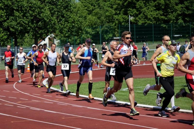 Am Nachmittag dann der Hauptwettkampf mit etwas über 100 Teilnehmern aus dem Lizenzsportler- und Jedermannbereich, dazu einige Staffeln. Mit Steffen Rarek gab es bei den Männern auch einen eindeutigen Favoriten auf den Sieg. Auch der Magdeburger TC stellte einige aussichtsreiche Kandidaten und Lokalmatador Marcel Glaser durfte auch nicht vergessen werden. Nach dem Startschuss setzten erst einmal zwei Staffelläufer die Akzente und machten 5 Kilometer lang ordentlich Tempo. Der erste der folgen konnte war Marcel Glaser. Steffen Rarek eine knappe halbe Minute dahinter musste erst einmal ordentlich schnaufen um dran zu bleiben. Aber auf dem Rad machte er dann ordentlich Druck und übernahm nach 11 Kilometern zu Beginn der 2. Radrunde die Spitzenposition. Diese sollte er, entgegen allen anderen im Feld, auch nicht mehr an die Staffelläufer im 2. Laufsplit abgeben. Am Ende ein souveräner (und erwarteter) Sieg für die Startnummer “1”. Es folgten Marcel Glaser und Jörg Röver."