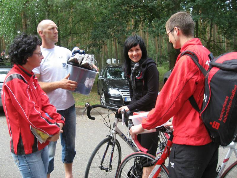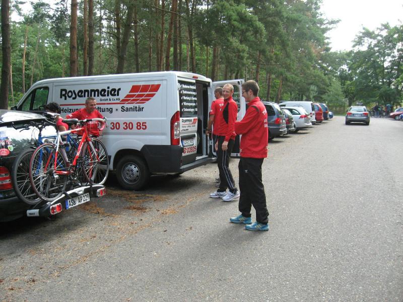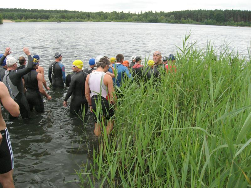 In der Nähe von Stendal, am idyllisch gelegenen Waldbad Wischer, starteten am Wochenende knapp 90 Teilnehmer über die ausgeschriebene olympische Distanz des SV Wasserfreunde Stendal 1923. Unter ihnen auch sechs Mutige der Gaensefurther Sportbewegung. Routiniert liefen die Vorbereitungen ab. Nachdem das Fahrrad mit Helm, Schuhe und Startnummerngürtel neben der Wasserschüssel für die Dreckfüße ihren Platz im Wechselgarten gefunden hatten, erfolgte im 21 Grad warmen Baggersee der Startschuss für die 1,5 Kilometer lange Schwimmstrecke. Im Kampf um die Positionen geriet der stille See mächtig in Wallung, bis sich die einzelnen Schwimmer wie an einer langen Kette eingereiht hatten. Da zwei Seerunden zu absolvieren waren, mussten die letzten fast bangen, von den ersten eingeholt zu werden. Jens-Uwe Börner, einfach nicht als Schwimmer geboren, hatte noch 750 Meter vor sich, als nach gut 22 Minuten der allererste Schwimmer aus dem Wasser hechtete. Starke 27:49 Minuten und damit schnellster Gaensefurther war Ralf Rosenmeier, gefolgt von Steffen Schöler, Torsten Blauwitz und Florian Börner. Die genannten dürften bereits auf der Fahrradstrecke gewesen sein, als auch Ingo Bieganski endlich das nasse Element hinter sich bringen konnte. Und nach knapp 45 Minuten hatte es sogar Jens-Uwe Börner geschafft. Bis zum wartenden Fahrrad mussten ungefähr 100 Meter im weichen Sandstrand zurückgelegt werden, was zusätzlich an den Kräften zehrte. Abkühlung verschaffte dann zunächst der Fahrtwind auf der durchnässten Kluft. Aber die hügelig zu fahrende 43,5 Kilometer lange Radstrecke heizte den Sportlern schnell wieder ein. Während die Ausreißer ziemlich dicht zusammen um jede bessere Position kämpften, versuchten Bieganski und Börner von hinten Plätze gut zu machen. Auch Börner gelang dies, trotz schwerem Stahlrad. Mit den Rädern wieder im Wechselgarten angekommen, sollte wie schon so oft die Laufstrecke die Entscheidungen bringen. In der Gaensefurther Spitze hatte sich Blauwitz kämpferisch nach vorn gearbeitet. Sollte es anfangs garnicht laufen, siegte er am Ende knapp vor Schöler. Prima in Form erwies sich auch Rosenmeier, der nur auf der Laufstrecke letztlich einbrach, den Vorsprung jedoch knapp vor Börner Junior halten konnte. Beide kamen in ihren Altersklassen auf das Podest. Dann folgte Bieganski, welcher durch seine 43-er Laufzeit noch so manchen Sportler überholt hatte. Inzwischen erfolgte bereits der Aufruf, den Wechselgarten für den Jedermann-Triathlon zu räumen. Zu diesem Zeitpunkt kam auch Jens-Uwe Börner endlich ins Ziel. Drei Stunden Fitness lagen hinter ihm. Eine Cola später stellte sich auch bei ihm der zufriedene Gesichtsausdruck ein. Bereits über den gesamten Tag herrschte Anspannung pur bei Jana Bieganski. Denn nun war es endlich soweit, der Start beim Jedermann-Triathlon über 750 Meter Schwimmen, 14,5 Kilometer Fahrrad fahren und fünf Kilometer laufen. Mit ihr stand zum ersten Mal Jana Berger am See, welche ganz relaxt ihr Triathlon Debüt angehen wollte. Beide gaben ihr bestes und bei Bieganski reichte es sogar für den dritten Platz in ihrer Altersklasse. Nach Siegerehrung und Tombola ging ein langer und aufregender Wettkampftag zu Ende. Beste Vorbereitungsarbeit auf den 11. Gaensefurther-Schlossbrunnen-Triathlon!
