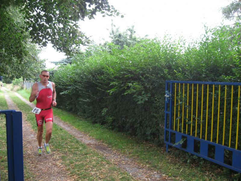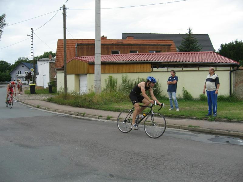 Als bester Gaensefurther kam Blauwitz nach 12 : 52 Minuten aus dem See. Er trotzte auf dem Rad dem Gegenwind, Rückenwind stellte sich erst auf der Zielgeraden und bergab ein. Eine 52 Kilometer pro Stunde erreichte dabei Jens-Uwe Börner. Blickte man in Kelbra beim Kyffhäuser Triathlon vor zwei Wochen noch in ein schmerzverzehrtes Gesicht, als Blauwitz vor allem gegen die Hitze ankämpfte, lief er sichtlich entspannter die abschließenden zwei Schleifen über jeweils drei Kilometer und in 26 : 51 Minuten – gesamt also : 1 : 31 : 32 Stunden. " Ich habe heute Athleten geschlagen, die ich noch nie geschlagen habe ", richtete er seinen Blick zum Beispiel auf Holger Rothenberger von Eintracht Ebendorf, der vier Plätze und mehr als eine Minute später durchs Ziel kam. In der internen Wertung wurde Blauwitz von Detlef Schäfer gefolgt : " Ich hätte noch eine Runde laufen können ", sagte dieser nach seiner Zielankunft auf Rang 30. Schäfer ist nicht der beste Schwimmer ( 13 : 55 ), dafür holte er einiges auf dem Rad auf ( 55 : 36 ) – und nicht zuletzt in seiner Paradedisziplin, dem Laufen ( 27 : 27 ). In 1 : 36 : 58 Stunden gewann er in der Senioren 2.