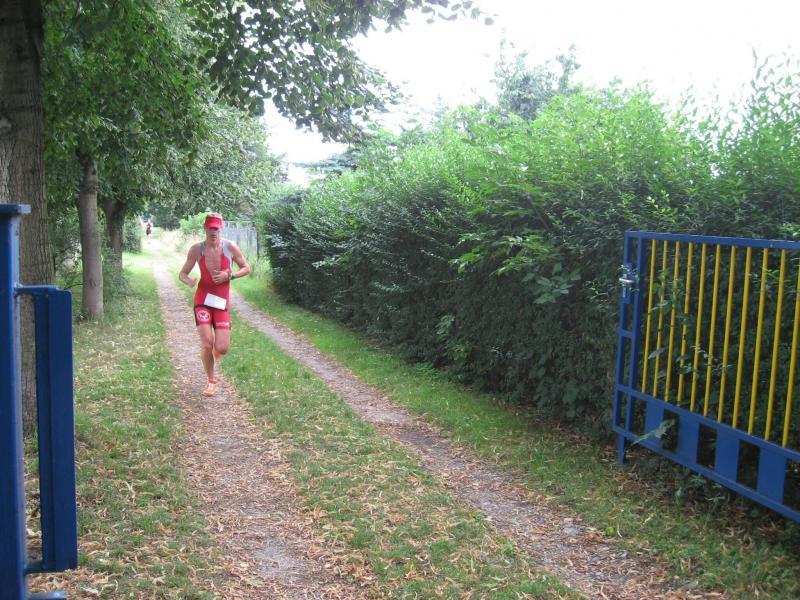 Florian Börner hat auf der zweiten Runde des ersten Elements abreißen lassen müssen. " Das Schwimmen eben ", zischte er. Über 14 : 24 Minuten kann man sagen : Da ist nach oben noch einiges offen. Gleiches gilt für die Raddistanz : 57 : 28 Minuten. Dafür lief zehn Plätze vor ihm im Klassement – und danach sowieso nicht – keiner die sechs Kilometer schneller als in 27 : 31 Minuten. " Auf der Laufstrecke habe ich einiges gut gemacht ", wusste Börner, der den ersten Platz bei den Junioren und den 40. Rang in der Gesamtwertung belegte in 1 : 39 : 24 Stunden. Pech dagegen hatte Ralf Rosenmeier, der das Ziel im Gehen erreichte. Sein Wettbewerb wurde nicht gewertet. Dabei kam er gut aus dem Wasser, lieferte sich auf der Radstrecke ein Kopf-an-Kopf-Rennen mit Detlef Schäfer, ging auf die Laufstrecke, verdrehte sich auf schlammigem Boden das Knie – und schied aus. Jens-Uwe Börner ging auf die zweite Laufrunde, als viele bereits im Ziel waren. Auch er hatte nach Wasser ( 16 : 26 ) und Rad ( 1 : 04 : 58 Stunden ) in seiner Spezialdisziplin ( 30 : 19 ) einges an Zeit gewonnen. Auf dem Stahlrad, hat er nach dem Altmark-Triathlon in Wischer berechnet, verliert er etwa fünf Minuten auf die Starter mit dem leichteren Alurad. Trotzdem wurde Börner erneut nicht Letzter, er erreichte nach 1 : 51 : 43 Stunden das Ziel, Rang 55 gesamt, Rang drei in der Senioren 2.