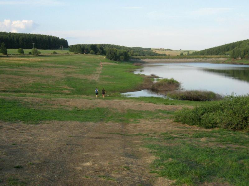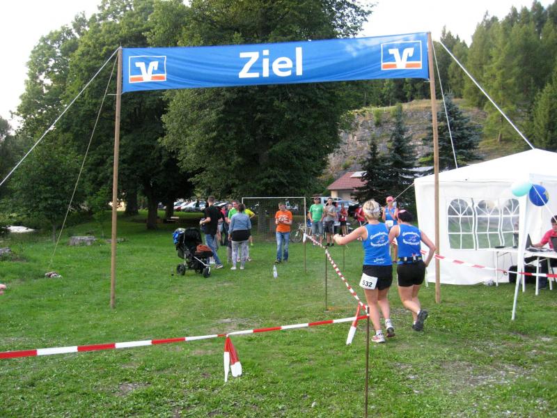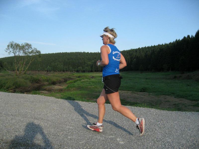 An dem Ort wo Kalte und Warme Bode zur eigentlichen Bode zusammenfließen, war der Start für 17:10 Uhr ausgeschrieben. Damit konnte das Kulturprogramm also nur vor dem Wettkampf absolviert werden. Nach einer Talsperrenbesichtigung und einem anständigen Mittagessen wurden in der Rübeländer Hermannshöhle, bei angenehmen acht Grad Celsius, die Läuferbeine ordentlich herunter gekühlt. Nach dem anschließenden Start in Königshütte mussten diese dann behutsam davon überzeugt werden, jetzt noch Schwerstarbeit zu leisten. Aber eine leichte Angst im Nacken trieb voran, denn die 21 Kilometer sollten möglichst ohne Umwege und vor Einbruch der Dunkelheit ins Ziel gebracht werden. Über herrliche Wald- und Wiesenwege war bald die Talsperre Königshütte erreicht. Gemeinsam mit den zehn Kilometerläufern kämpfte man sich hinauf zur Ruine Königsburg, von der es dann wieder rasant hinab ging. Nach 9,5 Kilometern trennten sich die Strecken und Renate Liedtkes erster Platz in der Altersklasse W60 war nur noch 500 Meter entfernt. Für die Langdistanz ging es wieder von 425 bergan auf über 500 Höhenmeter. Jens-Uwe Börner hatte sein Tun, den Frauenkampf fotografisch für die Nachwelt festzuhalten. Während sich Katrin Krebs an der Spitze zwischen Platz zwei und vier einsortieren musste, gelang es Petra Becker an Sabine Börner heran zulaufen. Nach dem Umrunden der Talsperre Mandelholz ging es in leichten Wellen an der Kalten Bode zurück nach Königshütte. Krebs brachte im Gesamtfeld der Frauen einen heiß erkämpften dritten Platz über die Ziellinie, Börner und Becker finishten am Ende wie so oft, gemeinsam. Wie für die Bode-Runners gemacht, ehrte der Veranstalter erfreulicherweise die Gesamtplätze eins bis sechs mit einer Medaille. Neben Krebs gingen die beiden letzten Frauen-Lorbeeren an Börner und Becker. Bei den Männern freute sich Triathlet Daniel Ragoß über den sechsten Platz Gesamt, was für ein Fest für die Gaensefurther Sportbewegung! Nach einer erfrischenden Outdoor-Dusche beschäftigte man sich mit der Auffüllung der Energiespeicher mittels Schmalzstulle und einem Alkoholfreien. Pünktlich zum Sonnenuntergang erfolgte die Rückreise: Keine Bode-Runners mehr auf den Strecken! Eine gelungene Premiere die hoffentlich im nächsten Jahr wieder in den Laufkalender passt…