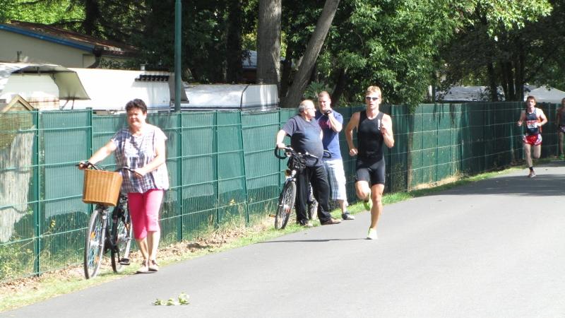 Ja wo schwimmen sie denn? Am Ufer blickte man in einige verwunderte Augenpaare, als der Schöne- becker Andreas Suck bereits die zweite Boje umkurvt hatte und sich das Hauptfeld noch auf der ersten Geraden im Wasser befand. "Wahnsinn", war nur einer der Ausrufe, die fielen, als der für den USC Magdeburg startende Suck als einziger Teilnehmer unterhalb der Zehn-Minuten-Marke und mit über 50 Sekunden Vorsprung den grünen Teppich in Richtung Wechselzone bestieg. Obwohl auf dem Rad und zu Fuß nicht so schnell unterwegs, reichte der Puffer für den Landesliga-Starter aus, um sich in der Endabrechnung auf Rang zehn zu positionieren.