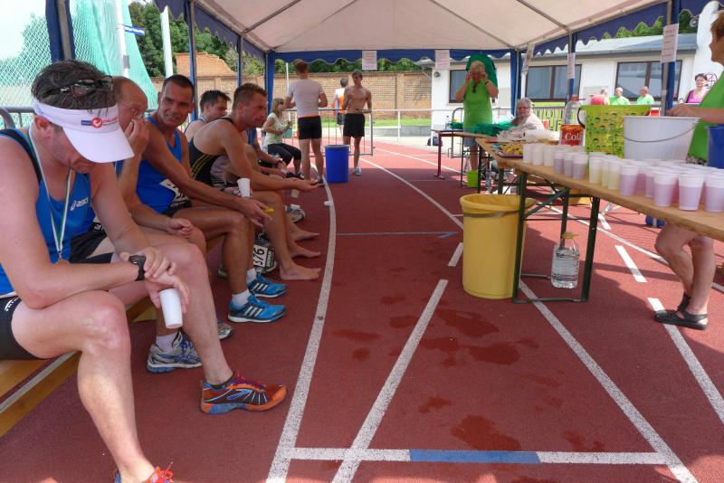 „Die Dusche danach“ ist für viele Volksläufer das allerbeste am Wettkampf überhaupt. Neben Dreck und Schweiß fällt auch alle Anspannung ab und die Freude über das Geschaffte signalisiert der Psyche grenzenlose Zufriedenheit. „Au Weia!“ schmunzelte eine Läuferin in Sicht auf ihre übergroßen Badelatschen. „Die haben wir in der Hitze des Gefechtes wohl vertauscht!“ Der Gatte im Nebenraum dürfte die größeren Schwierigkeiten gehabt haben.