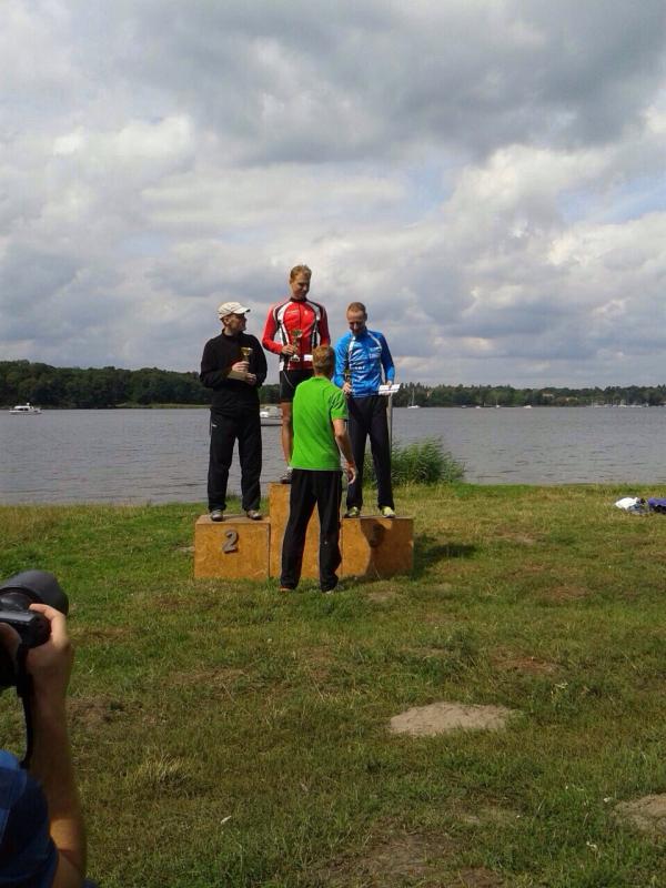 Am schönen Wannsee im Grunewald veranstaltetet ein Berliner Triathlonverein einen Triathlon über die Distanzen 1 km schwimmen - 24 km Radfahrern - 6 km laufen. Gemeinsam mit 50 weiteren Triathleten standen die beide pünktlich um 10:00 Uhr am Start zum 2. Crosstriathlon Berlin. Bei angenehmen Wassertemperaturen war das Tragen des Neoprenanzuges verboten. Es wurden zwei Runden zu je 500 m im Wannsee geschwommen. Blauwitz und Rosenmeier absolvierten das Schwimmen gemeinsam und hatten auf die Spitze ca. 3 min verloren, befanden sich aber immer noch im ersten Drittel des Feldes. Der Wechsel klappte bei beiden ohne Probleme und nun ging es auf 6 anspruchsvolle Radrunden durch den Grunewald. Zum Anfang jeder Runde ging es ca. 1 km auf sandigem Untergrund Bergauf und gespickt mit einer Tragepassage stellte sich der Radsplit als sehr anspruchsvoll heraus. Die beiden Gaensefurther kamen gut mit den Bedingungen zurecht und fuhren im Feld immer weiter nach vorne. Durch die Überrundungen anderer Teilnehmer hatte man den Überblick verloren und so sollte sich erst im Wechselgarten herausstellen an welcher Position man lag. Blauwitz kam als erster der beiden in die Wechselzone. Er zählte drei Räder und lag somit an Position vier. Die abschließenden 6 km Crosslauf gingen über 4 Runden. Schon beim Rauslaufen aus dem Wechselgarten sah Blauwitz den Drittplatzierten und machte sich auf die Verfolgung. Nun zahlte sich das harte Training der letzten Wochen aus. Schnell schloss er auf den Dritten auf und durch eine weitere Tempoverschärfung konnte er sich schnell lösen. Trotz bester Laufzeit an diesem Tag reichte es dann nicht mehr, die beiden vor ihm liegenden noch zu stellen. Auch bei Rosenmeier lief es auf dem Rad sehr gut und er wechselte als 13. auf die Laufstrecke. Hier konnte er von Anfang an gut Tempo machen und seinen 13. Platz im Gesamtklassement verteidigen. Am Ende wurde er mit dem Sieg in der AK 50 belohnt.
