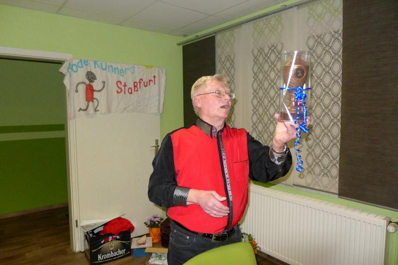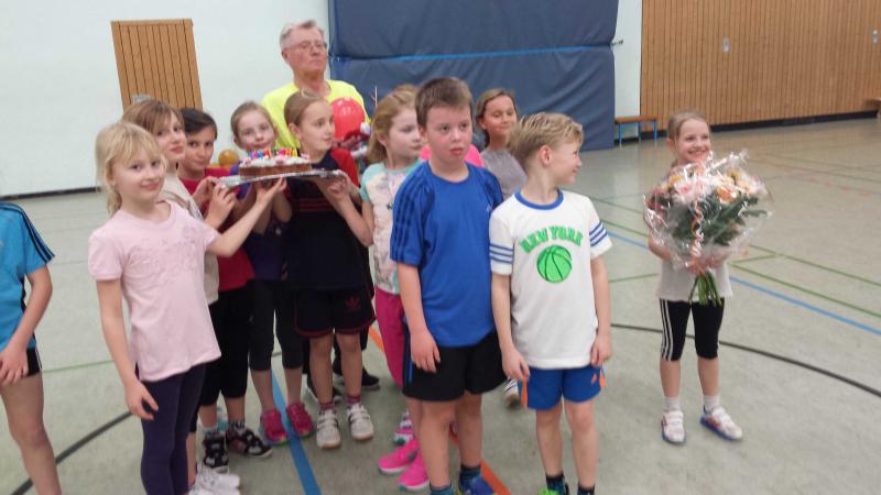 Kürzlich feierte Leichtathletikabteilungs- und Übungsleiter Joachim Rösler seinen siebzigsten Geburtstag. Vertreter der Vereinsleitung, Bode-Runners und seine Schützlinge aus den Trainingsgruppen ließen es sich nicht nehmen, dem Jubilar zu gratulieren und ihm noch recht viele, gesunde Jahre zu wünschen. Neben vielen Blumen, Gutscheinen und liebevoll gestalteten Collagen überraschten ihn "seine Kinder " sogar mit einer selbstgebackenen Torte und einem Jubiläums-T-Shirt. Als dann alle "Happy birthday" anstimmten, musste er sich doch die eine oder andere Träne verdrücken. Er versicherte allen, während sie seinen gleich verteilten Kuchen verspeisten, dass er noch lange nicht ans Aufhören denkt, sofern seine Gesundheit mitspielt. Und vielleicht findet sich ja doch noch ein Nachfolger, der seine ihm an Herz gewachsene Trainertätigkeit mit den jungen Athleten fortsetzt.
