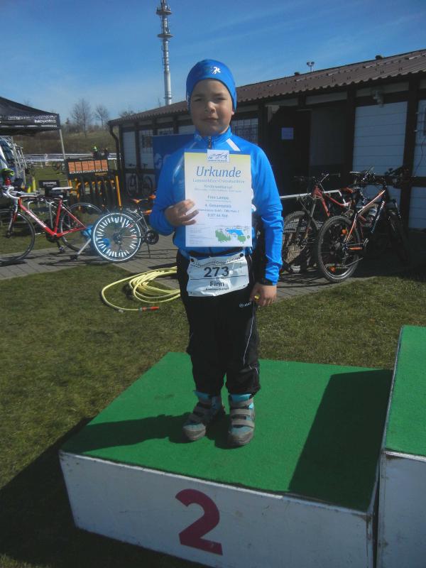 Das jüngste Mitglied der Triathlonabteilung der Gaensefurther Sportbewegung drängte seine Eltern, auch in Niedersachsen starten zu dürfen, wollte er doch wissen, wie es bei einem richtigen Wettkampf zugeht. Mit großer Begeisterung war der Sechsjährige dann auch bei der Sache und schlug sich in Helmstedt wacker. Die zweimal 0,2 Kilometer Laufstrecke und die 1 Kilometer lange Radstrecke waren für ihn eine Herausforderung, die er ohne Schwierigkeiten bewältigte. Am Ende konnte Mutter Annett ihren freudestrahlenden Helden nach einer Gesamtzeit von 7:44 Minuten im Ziel empfangen. Er musste nur einem Konkurrenten den Vortritt lassen. Finn hat nun Blut geleckt und möchte bei der nächsten Gelegenheit unbedingt wieder mit dabei sein. Seine stolzen Eltern haben bestimmt nichts dagegen.