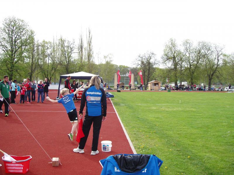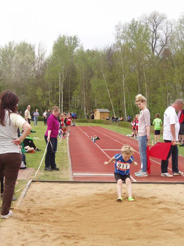 Marek Kadereit (m13) eröffnete mit Kugelstoß das Wettkampfgeschehen für die Gaensefurther. Mit persönlicher Bestleistung (PB) von 11,74 Meter sicherte er sich hinter einem Konkurrenten aus Halle Platz zwei. "Wenn es ihm gelingt, seine Technik weiter zu verbessern, kann es noch entschieden weiter gehen", waren sich die Experten danach einig. Mit einer neuen PB im Hochsprung von 1,45 Meter, die ihm aber nur Platz fünf einbrachte, machte Robin Dietrich (m13) auf sich aufmerksam. Im Weitsprung wurde er Siebter. Der gleichaltrige Moritz Himpenmacher war mit großen Erwartungen in Bernburg angetreten, aber Beschwerden im Bein ließen nach 1,35 Meter im Hochsprung keine Fortsetzung des Wettkampfes an diesem Tage mehr zu.