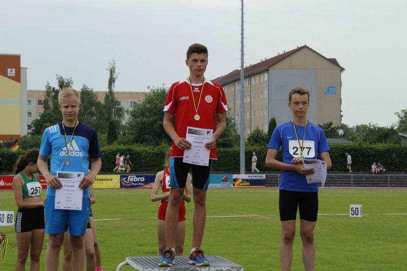 Für Marek Kadereit (m13) begann das Wettkampfgeschehen mit seiner Lieblingsdisziplin, dem Speerwurf. Doch auch diesmal sollte trotz aller Bemühungen die von ihm angepeilte Marke von 45 m nicht erreicht werden. Seine geworfenen 42,03 Meter reichten zwar souverän zum Sieg gegen seine 4 Mitstreiter und zum Bezirksmeistertitel, aber zufrieden mit sich war der Athlet nicht. Was beim Training kürzlich noch klappte, wollte bei der BM einfach nicht gelingen. Beim folgenden Kugelstoßen knackte er dann beim 1. Versuch gleich die lange erträumte Marke von 12,00 Meter, konnte sich im Verlauf des Wettkampfes sogar noch bis auf 12,55 Meter steigern. So war er dem haushohen Favoriten von der LG Altmark mit einer Bestleistung von 13,45 m doch sehr nahe gekommen, weil dieser zur BM sein Leistungsvermögen nicht vollständig abrufen konnte und nur mit 12,85 m den Sieg und Titel für sich einstrich. Weil in Diskuswurf ein Teilnehmerfeld von 4 angegeben war, bestand das Ziel im Erreichen des 3. Platzes. Viel mehr hatte Marek angesichts der mäßigen Technik und dem fehlenden Training nicht anvisiert. Den 1. Wurf machte er aus dem Stand, um einen gültigen Versuch zu haben. Beim 2. Versuch schleuderte er den Diskus dann auf 32,36 Meter, was am Ende den unverhofften Sieg und den Titel bedeutete. So konnte er mit zwei Titeln und einem Silberrang im Gepäck hochzufrieden den Heimweg antreten.