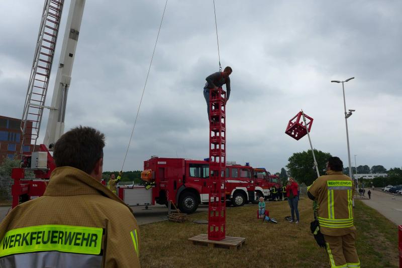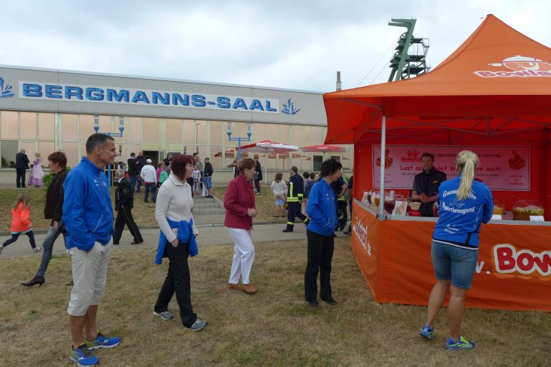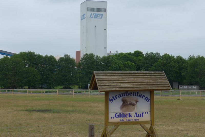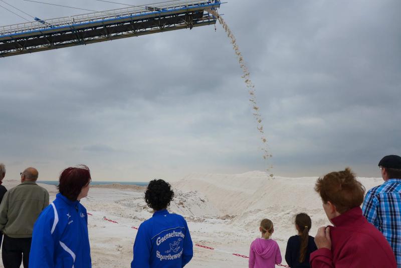 Mit dem Salutschuss der Schricker Schützen begann die originelle Führung durch das Betriebsgelände zunächst am Zielitzer Schwimmbad. Vorbei an der Straußenfarm „Glück Auf“, registrierte man die emsigen Vorbereitungen auf den angrenzenden Festwiesen. Spätestens nach dem Passieren des Pförtnerhäuschens offenbarten sich die gigantischen Betriebsanlagen für die aufwendige Kaliproduktion. „Immer schön dem Förderband folgen!“, lautete die einfache Wegbeschreibung des freundlichen Streckenpostens, der sich irgendwie schelmisch die Hände rieb.