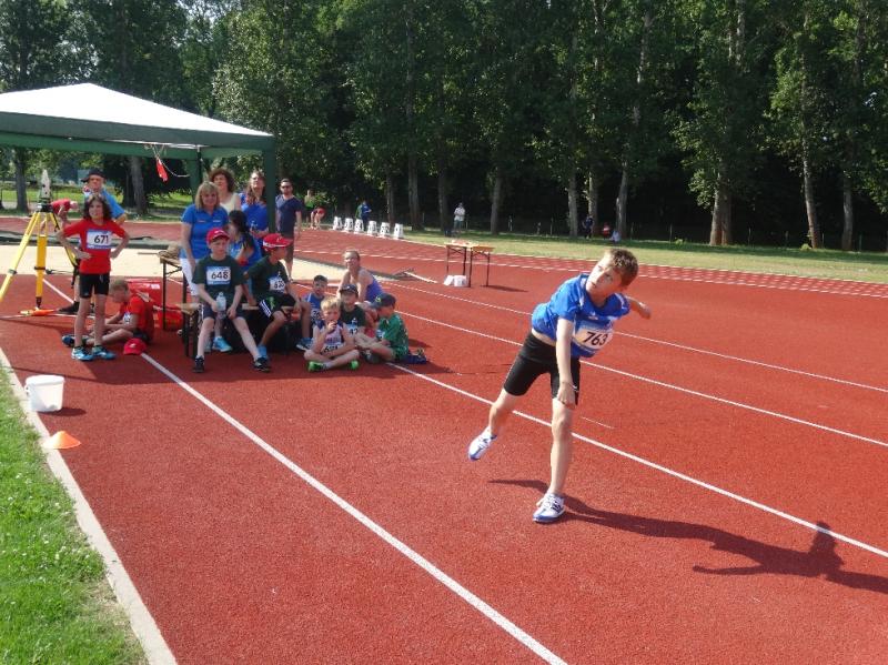 Celine Ladehoff (w13) hatte sich für Kugelstoß und 800m Lauf entschieden. Dass die Kugel bei 7,18m landete, löste bei ihr große Freude aus, zumal sie damit auch eine neue PB vorweisen konnte. Der 800m Lauf fiel dann wie auch bei den anderen Athleten der Hitze zum Opfer.