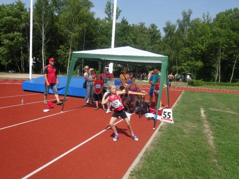 Einen sehr erfolgreichen Tag hatte auch Fabienne Sämisch (w9). Mit 3 persönlichen Bestleistungen (Ball-25,72m (2.), 50m-8,97 (3.), weit-3,19m (3.) durfte sie drei Mal auf dem Podest ihre Medaillen in Empfang nehmen.