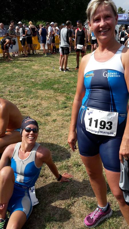 Annett schließlich hatte ihren Wettkampf am Sonntag Nachmittag. Nach längerer Pause hatte sie sich durchgerungen, doch wieder Wettkampfluft zu schnuppern. Die Löderburgerin schlug sich auf der Fitnessdistanz bravourös, kam auf Anhieb in ihrer Altersklasse auf Platz drei, nachdem sie 1:19:07 Stunden für 550 m schwimmen, 21 km Radfahren und 5 km Laufen brauchte. Begeistert berichtete sie: "Ein junges Mädchen hat mich 3 mal auf der Radstrecke überholt. Auf der Laufstrecke bei km 1 habe ich sie dann endgültig hinter mir gelassen. Sie war übrigens die einzige Frau, die mich überholt hat im Wettkampf. Das hat mich natürlich riesig gefreut und motiviert wieder einzusteigen."