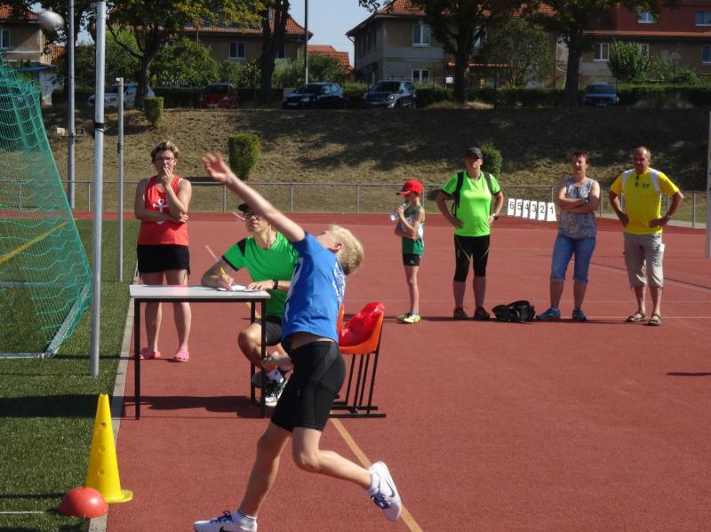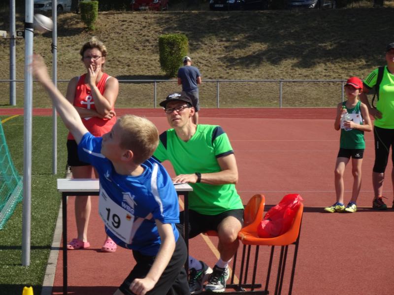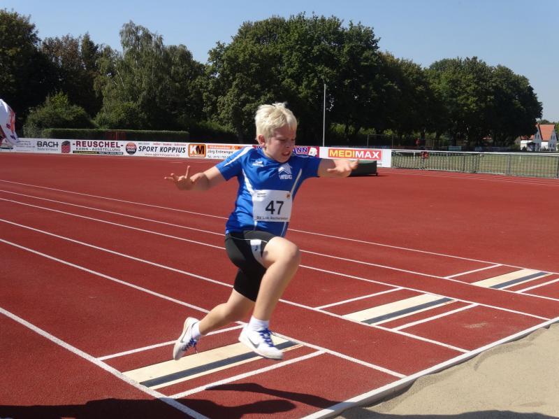 Die größte Gruppe in einer Altersklasse bildeten die 10 jährigen Jungen. Mit 8,09 Sekunden im 50m Lauf, 4,03 Meter im Weitsprung und neuer persönlicher Bestleistung (PB) von 34,00 Meter im Schlagballweitwurf wurde Lars Weidig seiner Favoritenrolle laut Anmeldeliste gerecht und sicherte sich den Sieg im Dreikampf mit 1012 Punkten. Auf Platz 2 folgte Lukas Ladehoff (50m-8,80s/weit-4,43m/Ball-30,50m) mit 956 Punkten. Der 3. Podestplatz schließlich gehörte Jan Hübner (50m-8,56s/weit-3,63m/Ball-32,50m (PB). Trainingskamerad Marc Krüger, bisher mit wenig Wettkampferfahrung, erreichte mit (50m-9,12s/weit-3,43m (PB)/Ball-20,00m(PB) und 717 Punkten Rang sieben. Aber auch er ging an diesem Tag nicht leer aus und wurde mit einem Sprung auf das Treppchen belohnt, denn im 800m Lauf konnte er sich mit 3:16,13 Minuten über Platz drei freuen.