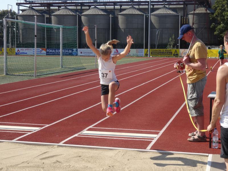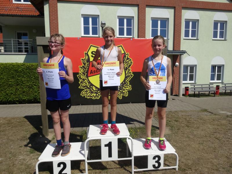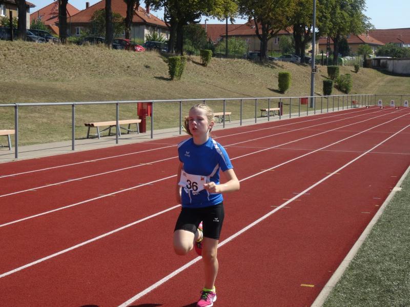 Bei den Mädchen der Altersklasse w10 stellte sich Fabienne Sämisch nach längerer Wettkampfpause ihren Konkurrentinnen. Mit 2 neuen persönlichen Bestleistungen von 8,79 Sekunden über 50m und 3,27 Meter im Weitsprung erkämpfte sie sich zusammen mit 22,50 Meter im Schlagballweitwurf die Silbermedaille im Dreikampf (963 Punkte). Als sie sich über 800m mit weitem Vorsprung den Sieg holte, war die Freude riesengroß.