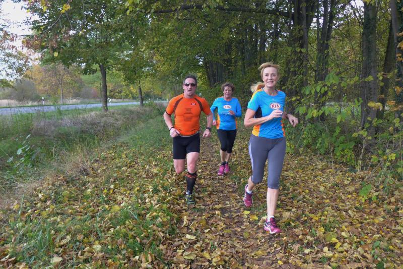 Voller Körpereinsatz auf der herbstlichen Laufstrecke