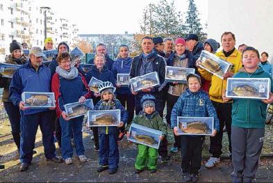 In Staßfurt-Nord ging es genauso fröhlich und munter am Sonnabendmorgen mit 42 Teilnehmern weiter. Hier organisiert seit 36 Jahren die Gymnastikgruppe des Sportverein (SV) Salzland, früher die Betriebssportgemeinschaft (BSG) Elektronik, um Sigrid Hermanns den Lauf. Ute Rotter, seit 36 dabei, erinnert sich noch an die Anfänge: „Da haben wir den Karpfen noch lebend mit nach Hause genommen und ihn in der Badewanne übernachten lassen.“ Heute wird der Karpfenlauf vorwiegend durch die Unterstützung des Real-Marktes in Staßfurt, des Kreissportbundes, Stephan Rähm und Rügenwalder ermöglicht, betont Sigrid Hermanns, deren übergeordneter Verein, der SV Salzland Staßfurt, seit 66 Jahren besteht. Sie und die Gymnastikfrauen in ihrer Gruppe organisieren die lustige Aktion immer wieder gern, auch wenn das mit Aufwand und Organisation verbunden sei, erzählt sie. In Staßfurt-Nord gewinnen übrigens nur die Glückspilze unter den Losnummern, eine Zeitwertung gibt es nicht.