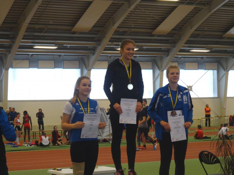 Alina hingegen hat sich nur dem 60m Sprint verschrieben. Ihre Erkältung noch nicht vollständig auskuriert, war sie trotzdem guter Dinge, einen vorderen Platz belegen zu können. Nachdem sie im langsameren von 2 Zeitvorläufen nur Rang 3 erreichte, begrub sie alle ihre Hoffnungen auf eine Endlaufteilnahme und bereitete sich schon auf die Heimreise vor. Als sie auf der Ergebnisliste schließlich ihren Namen an Position vier fand und mit 8,71 Sekunden doch für den Finallauf qualifiziert war, konnte sie ihr Glück kaum fassen. Jetzt war wieder alles möglich und ihr Ehrgeiz erwachte von neuem. "Ich möchte unbedingt meine Laufzeit verbessern und vielleicht reicht es ja dann auch zu einem Podestplatz", so ihr großer Wunsch. Im Lauf übernahmen dann 2 Konkurrentinnen aus Stendal die Führung und verteidigten diese bis ins Ziel. Alina und zwei weitere Mädchen überquerten nahezu gleichzeitig auf Position 3 die Ziellinie. "Wird das reichen?" Bange Minuten vergingen, erst die elektronische Auswertung brachte Gewissheit: Platz 3 mit 7,69 Sekunden für Alina- der Medaillenplatz war geschafft!